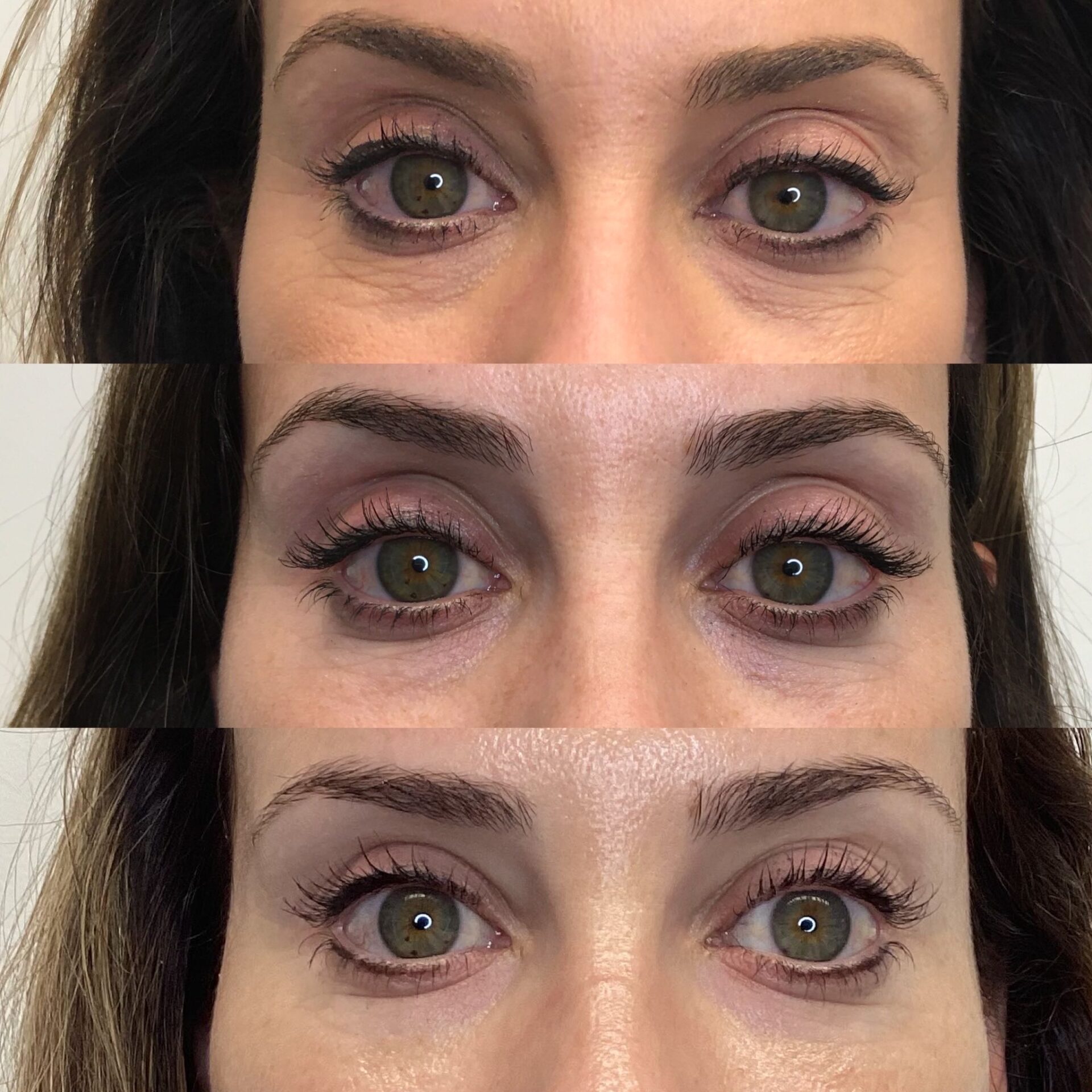 Before, during, and after. Combination of under-eye filler (Volbella), Clear & Brilliant, and Secret RF Microneedling under the eyes.